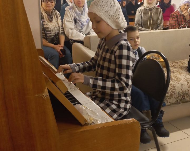 Ребята прославили плотию рожденного Иисуса Христа, делясь друг с другом своими дарами. Звучало пение Рождественских тропаря и кондака, известных многим колядок, дети рассказывали стихи, играли на фортепиано.
